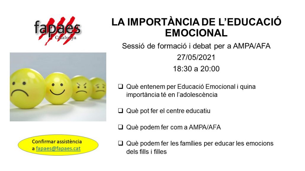 Sessió de formació i debat per a membres de juntes directives d’AMPA/AFA Confirmar inscripció a: fapaes@nulled.fapaes.cat