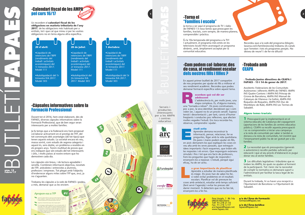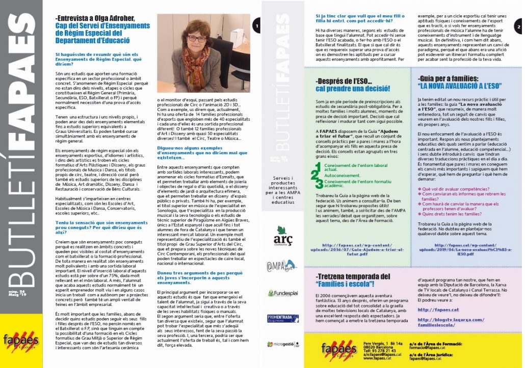 Butlletins informatius per a les AMPA /AFA i famílies