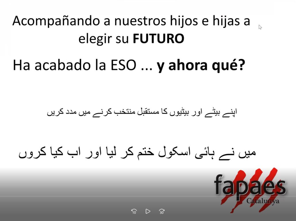 VIDEO WEBINAR: Han acabat l’ESO… i ara què? – IDIOMA URDÚ